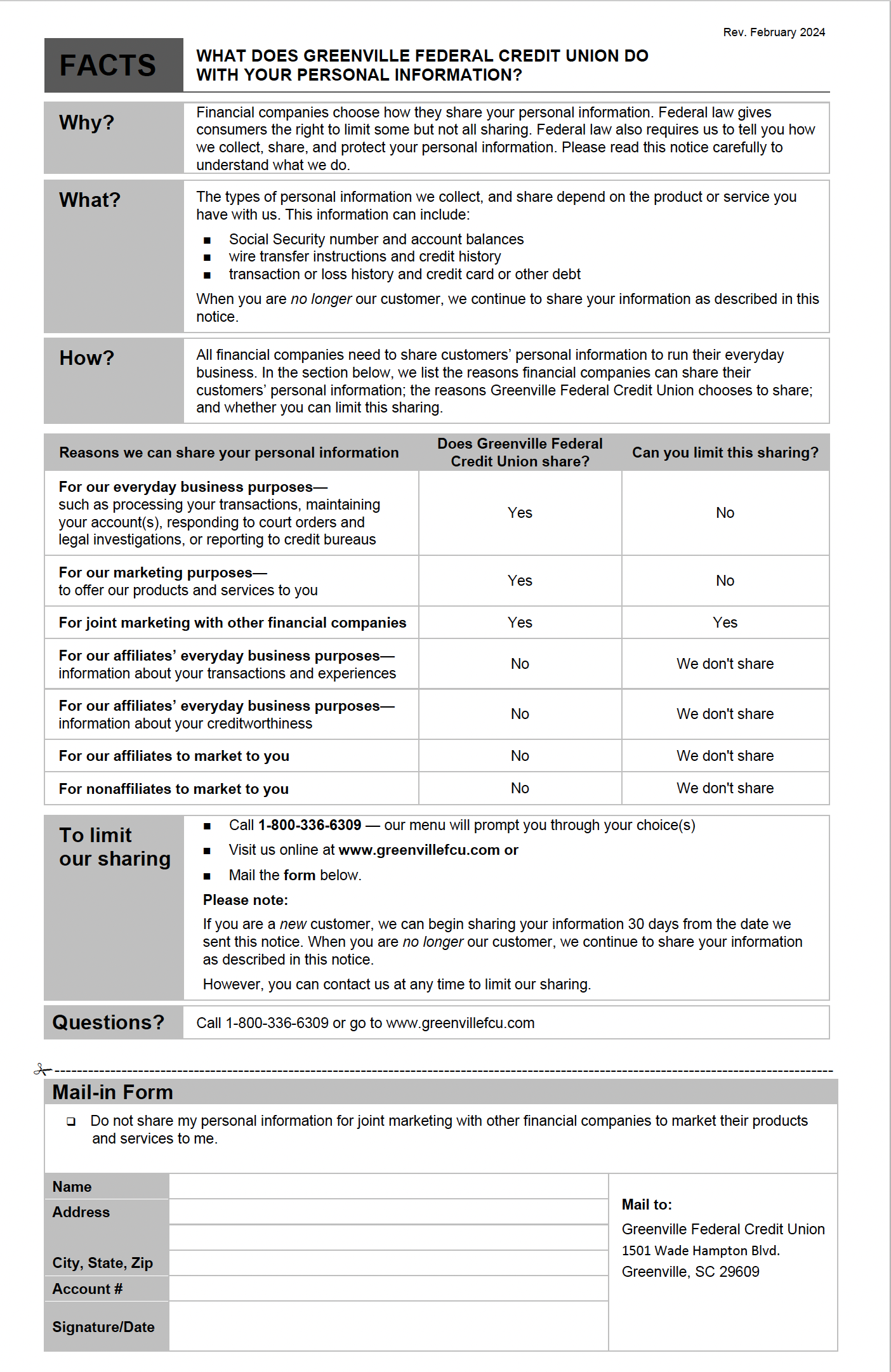 By clicking “Accept all,” you agree Greenville Federal Credit Union can store cookies on your device and disclose information in accordance with our Cookie Policy.